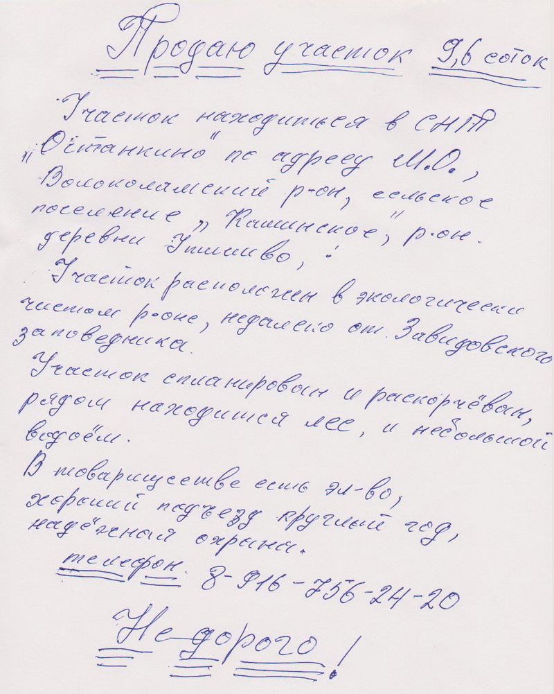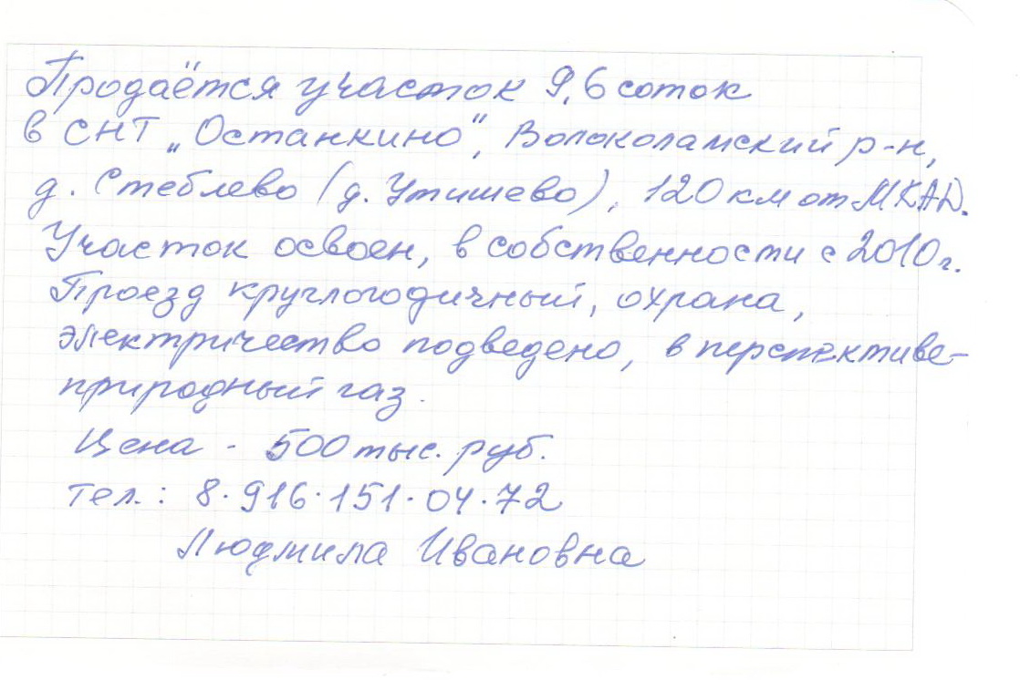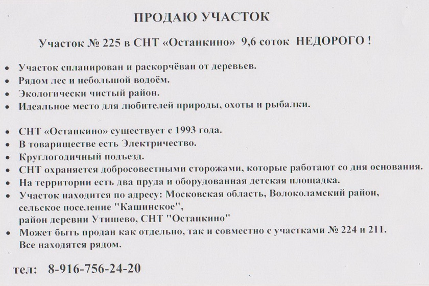 Здесь будут размещаться частные объявления от членов СНТ "Останкино":